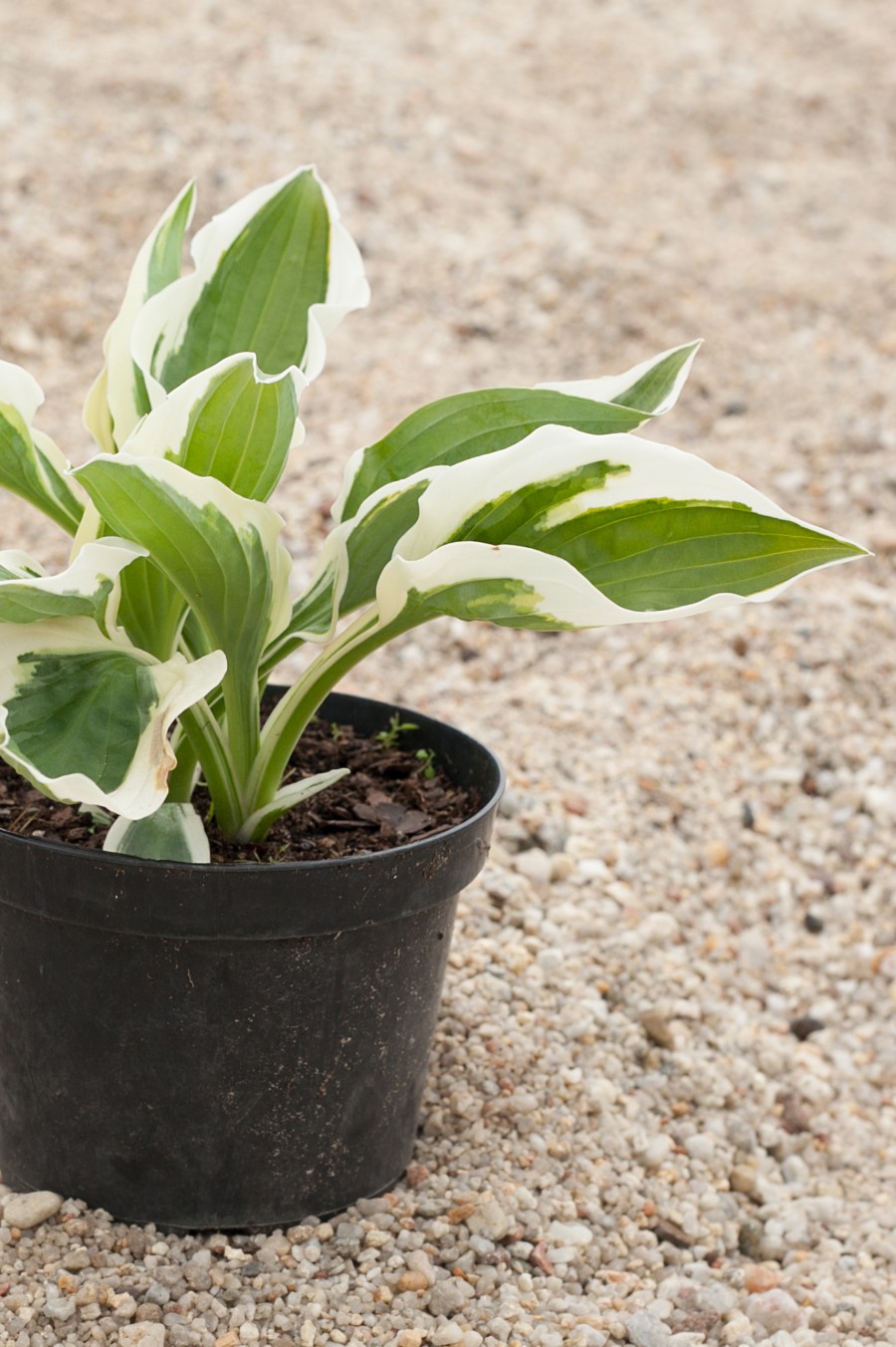 American Hosta Growers Hosta roku 1997. Liście intensywnie zielone wewnątrz z kremowo białym, nieregularnym bardzo atrakcyjnym marginesem, lśniące, owalne u podstawy, kielichowato zwinięte.